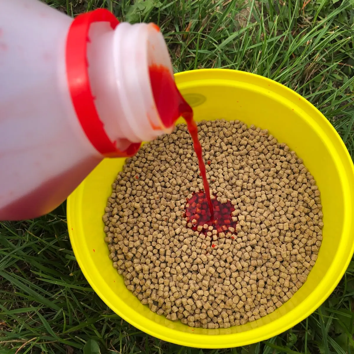 Voor grondvoer, paste & pellets voeg je een deel bait booster toe aan je aanmaakwater.