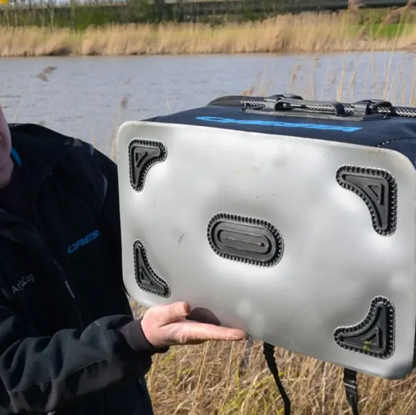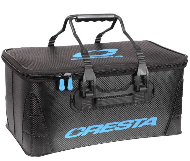 De waterdichte EVA Base Bag met stijlvolle carbon look maakt opslag en transport van benodigdheden gemakkelijker als ooit tevoren. Dankzij het uitgekiende formaat biedt de Base Bag plaats aan minimaal 2 grote en 4 kleine Accessoires Bags en/of cresta Bait Bowls. De grove rits, luxe handvat en de bodem- en hoek protectors maken deze tas robuust en zeer gebruiksvriendelijk.
