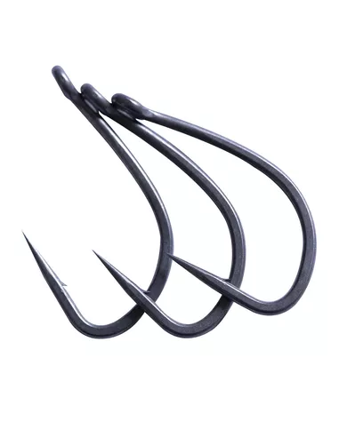 De middellange haaksteel eindigt in een subtiel naar buiten gedraaid oog, perfect voor het knopen van de knotless knot met stijve onderlijnmaterialen zoals Bristle Filament. Op deze reeks hebben we de oogdiameters iets vergroot, zodat het geen probleem is bij de grotere maten om 25lb Bristle Filament driemaal door te kunnen halen.