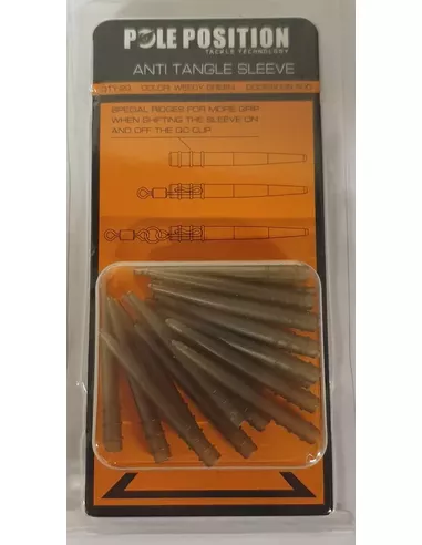 Deze anti tangle sleeve is ontwikkeld om het in de war gooien van je onderlijn te voorkomen en daarmee de effectiviteit van je montage te waarborgen. De conisch gevormde sleeve houdt de onderlijn op afstand van het lood. De speciale ribbels bovenaan de sleeve vergroten de grip op de sleeve en daarmee het gebruikersgemak.