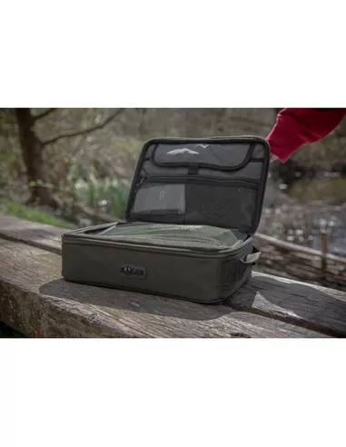 De SP Multi Pouch is een universeel opbergsysteem voorzien van hard EVA deksel, welke naast bivvy tafel ook als tablet houder kan worden gebruikt. Geschikt voor de meeste tackleboxen, voorzien van tussenschot voorzien van Mag-Loc sluiting, 2 afsluitbare mesh opbergvakjes en vervaardigd uit dezelfde 1680D, PU gecoat, waterdicht materiaal als de rest van de SP Luggage Range(de hoogste kwaliteit op de markt).