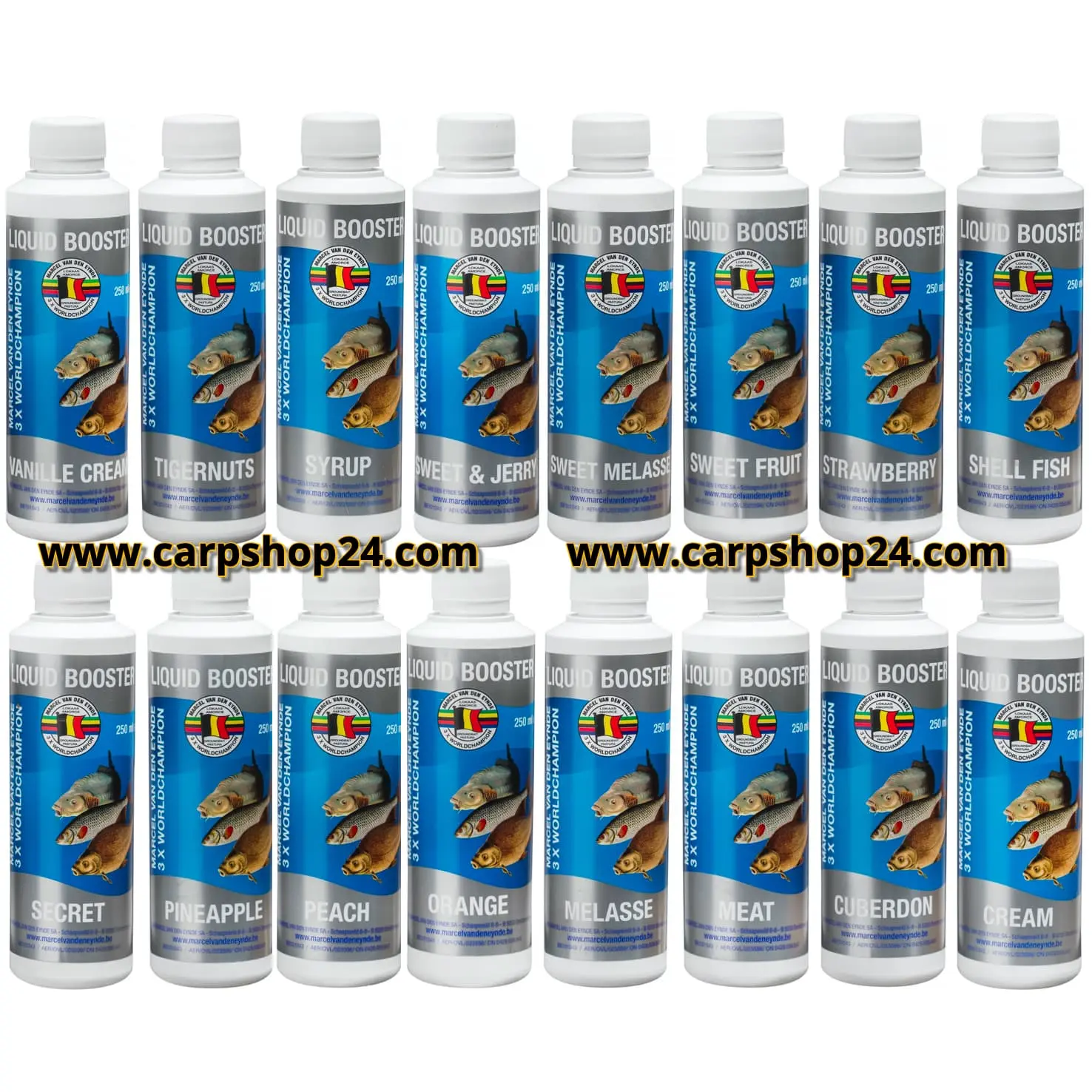 | Van Den Eynde Liquid Booster 250ml | Bream, Tigernuts, Shell Fish, Secret, Orange, Vanille Cream, Pineapple, Meat, Melasse, Cuberdon, Scoberry |